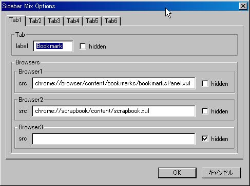 ってるのは1個目のリンク先のSidebar Mix 6タブ版です。
